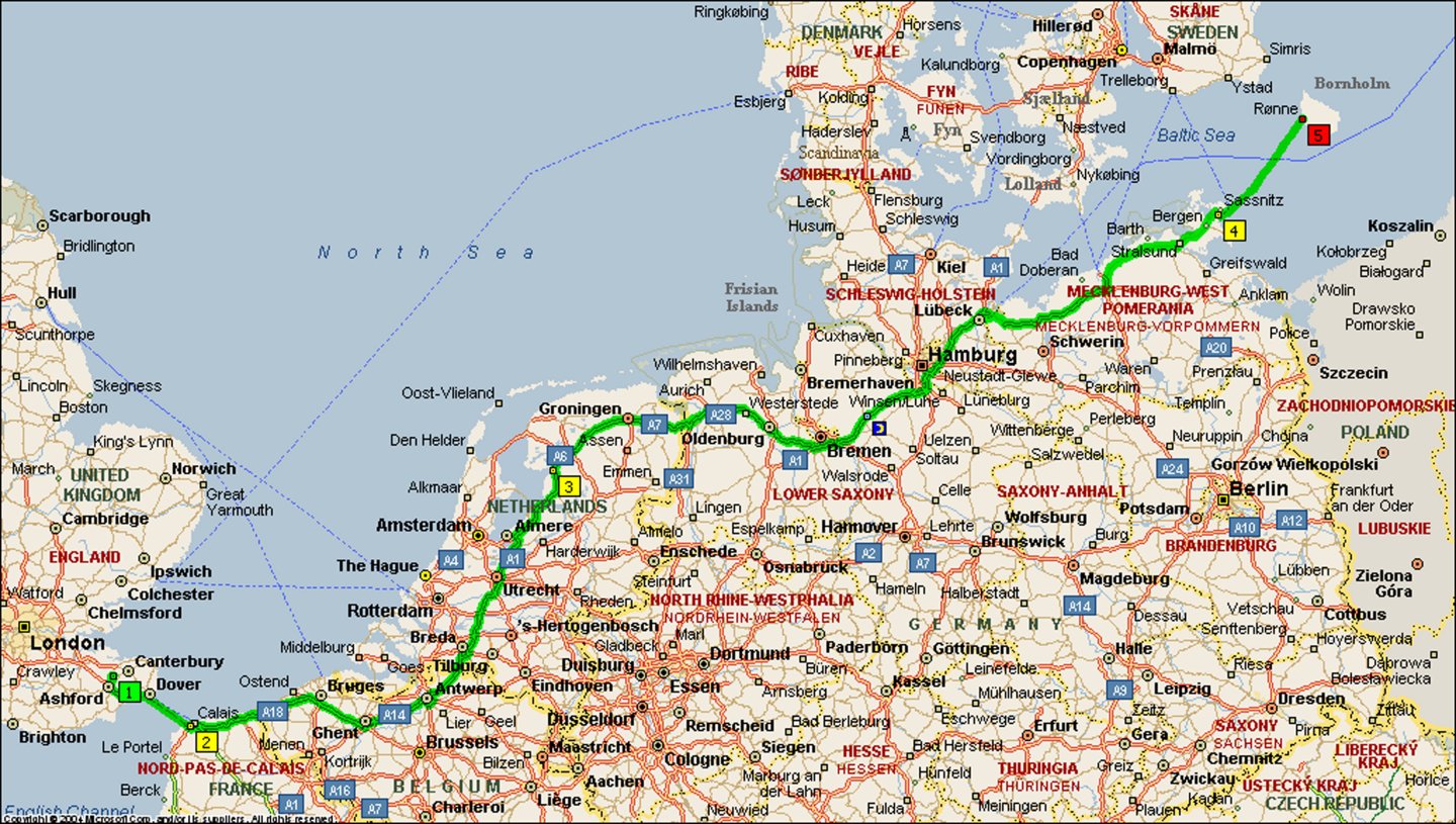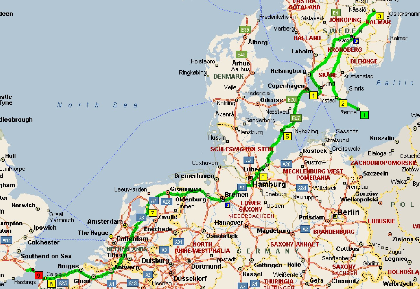 down through Denmark to the Rodby – Puttgarden ferry and into Germany. The