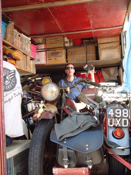 an antique ramp, held together with a lorry strap, and squeezed into the van.