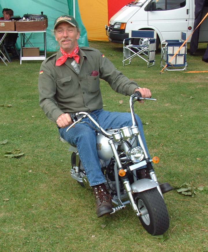 a small motorbike that we all had a ride on then he sets off with the idea of
