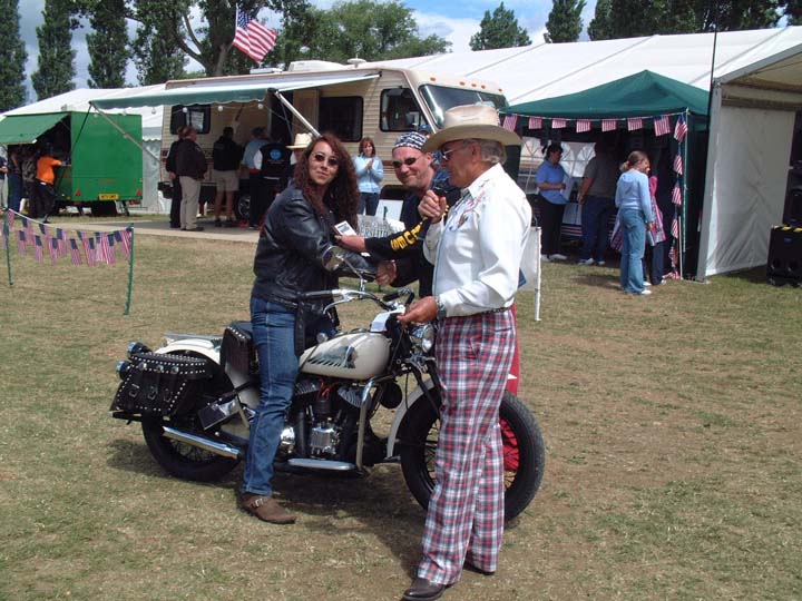 it was a sympathy vote as he had the smallest Harley there! Ahhhh and yeah He's won it before, But this time he stood in the pouring